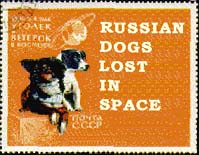 med jakobsstav. T.h.: Den russiske hyrdehund Leika, det første levende væsen sendt i orbit - opsendtes med russernes satellit Sputnik,