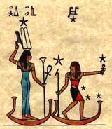 himmelkort. Til rituel sejlads på Nilen tænktes flodens hellige vandvej sat på